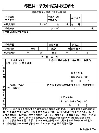 零星林木采伐申请及林权证明表